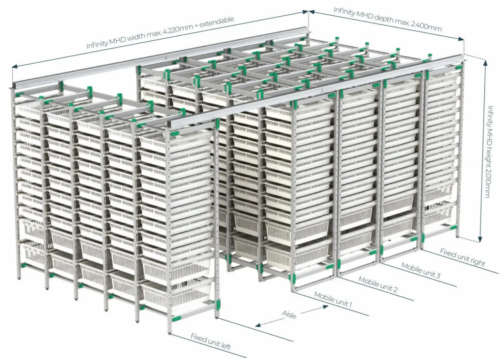 The mobile shelving system by Agile Medical.